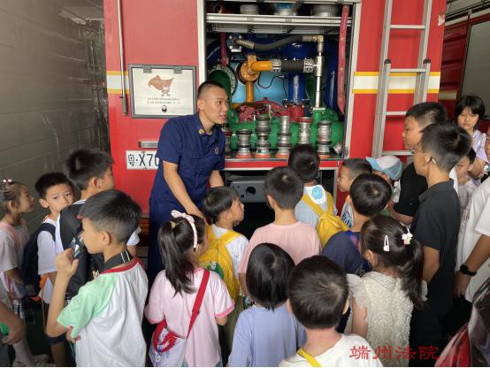 (图为城东消防站队员为法院干警子女开展消防安全教育)