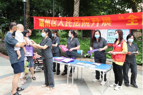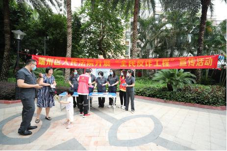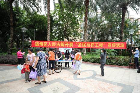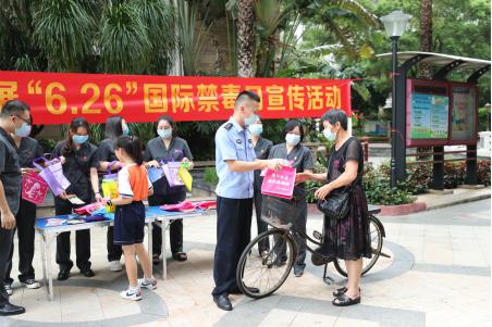 在“6.26”国际禁毒日来临之际,为深入推进打击治理电信网络诈骗和毒品预防工作,增强人民群众禁毒、拒毒及反诈意识, 6月25日,端州法院干警来到信安社区鸿景观园小区开展禁毒暨“全民反诈工程”法治宣传活动,为社区群众普及禁毒及反诈法律知识,营造禁毒防毒和“全民反诈”的良好氛围。