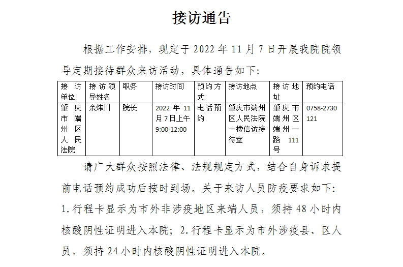 接访通告(接访时间:2022年11月7日)