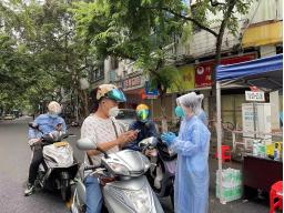在核酸检测点,组织群众有序排队,帮助群众扫码登记,助力核酸检测工作快速有序进行;