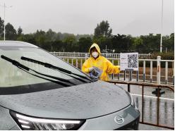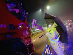 在交通设卡点,检查入城车辆通行资格,引导入城人员登记信息;