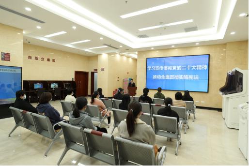 12月7日下午,我院在诉讼服务中心开展“学习宣传贯彻党的二十大精神 推动全面贯彻实施宪法”主题宣讲会。