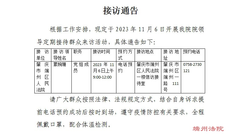 接访通告(接访时间:2023年11月6日)