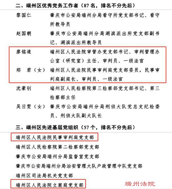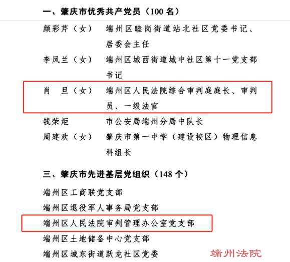 喜讯!端州法院3名党员、3个基层党组织获评肇庆市、端州区“两优一先”!