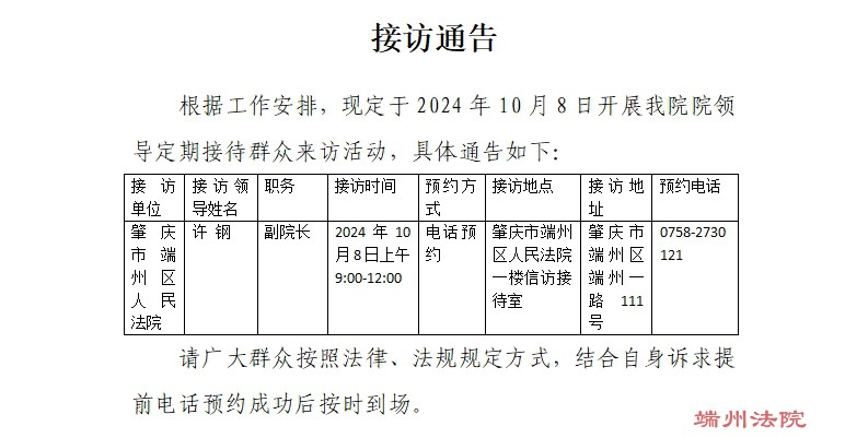 接访通告(接访时间:2024年10月8日)