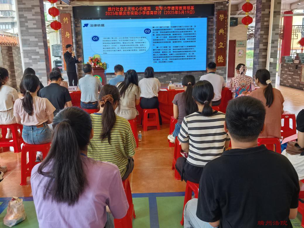 5月19日上午,我院青年法官林达受邀走进肇庆市实验小学,为该校教职工普法“充电”,进一步提升教职工法治素养,护航未成年人健康成长。宣讲中,林达法官围绕校园管理法律风险、师生权益保障等内容,通过“案例+法规”相结合的形式进行详细释明,并就学校教学管理过程中常见的安全保障义务风险问题提出专业法律建议。现场反响热烈,教职工纷纷表示对如何依法履行教育职责有了更清晰的认知。