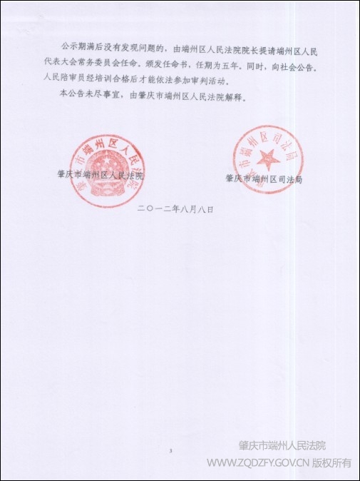 端州法院公开增选人民陪审员公告