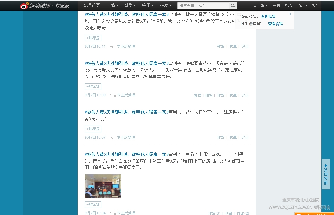 9月7日上午公正肇庆微博直播庭审网页浏览图