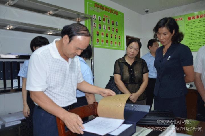 区人大常委会副主任罗振明在认真查阅我院诉前联调工作台账