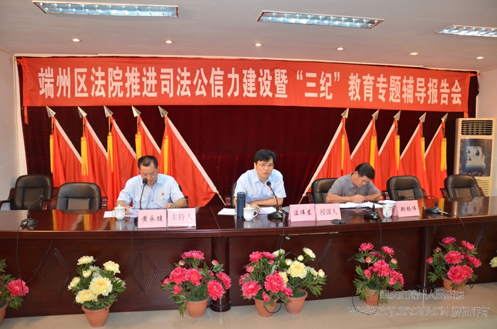 为深入推进我院司法公信力建设,加强干警廉政教育,进一步增强队伍的党性观念和纪律意识,促进我院的党风廉政建设,10月30日下午,我院召开了推进司法公信力建设暨“党纪、政纪、法纪”教育专题辅导报告会,院党组书记、院长温伟东为全院干警上了一堂题为“加强干警廉政教育,保持队伍纯洁性”的专题辅导课。院党组成员、纪检组组长黄永健主持会议,端州区纪委第二派驻纪检监察组组长郑扬伟应邀出席了会议。