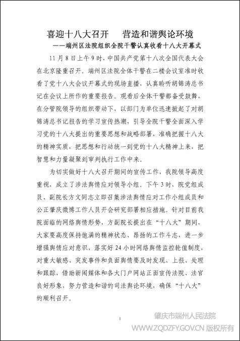 喜迎十八大召开 营造和谐舆论环境