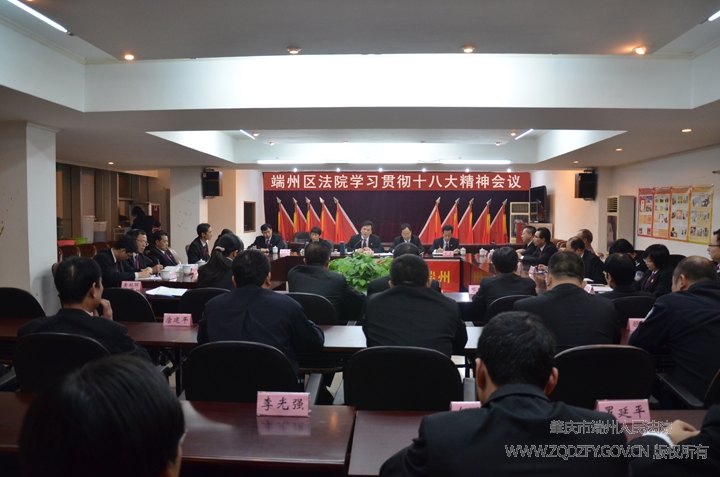 最后,温院长作总结发言,要求各部门负责人认真组织干警以党支部、庭务会等形式继续开展形式多样的学习讨论活动,将贯彻落实十八大精神和法院工作有机结合起来,以“四个抓手”为下步工作重点,全面推动法院工作的科学发展。一是以能动司法为抓手,全力维护和谐稳定大局。要统筹审判执行、涉诉信访、法治创建、司法宣传等工作,促进社会对司法公正的认同,努力提升法院司法公信力。二是以公平正义为抓手,全力推进司法为民工程建设。要深入开展“法官进社区”、巡回审判等司法便民利民工作,切实维护人民群众的合法权益,增强人民群众的满意度。三是以司法改革为抓手,全力营造法治化营商环境。要继续推进小额速裁机制建设、完善婚姻家庭纠纷案件、交通事故纠纷案件的专业化审理模式,着力构建公正、高效、权威的社会主义司法体制。四是以党建“书记项目”为抓手,全力推进法院队伍建设。要围绕“抓党建带队建促审判”的工作思路,深化党风廉政建设和政法干警核心价值观教育,努力打造一支忠诚、公正、为民、廉洁的司法队伍。