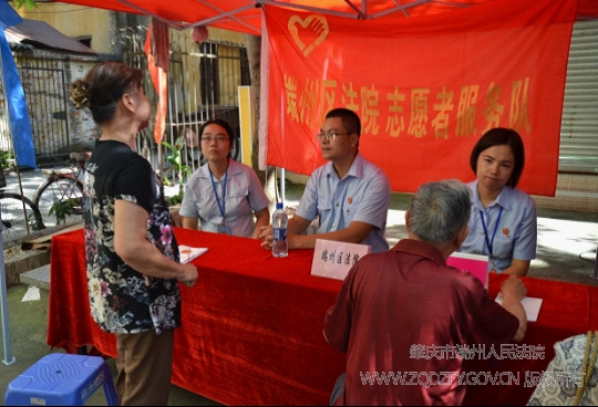 为深入开展群众路线教育实践活动,提高人民群众对法院工作的满意度,进一步推动“司法公正水平提高年”和“司法作风明显改进年”活动开展,7月5日上午,我院联同结对共建单位在端五社区内的二轻小花园开展以“科普法律进社区、共建文明好家园”为主题的志愿服务活动。院党组成员、政工科科长、机关党委书记苏彤同志率领青年志愿者服务队深入挂点社区开展普法宣传,为群众提供面对面的法律咨询,活动收到了良好的社会反响。