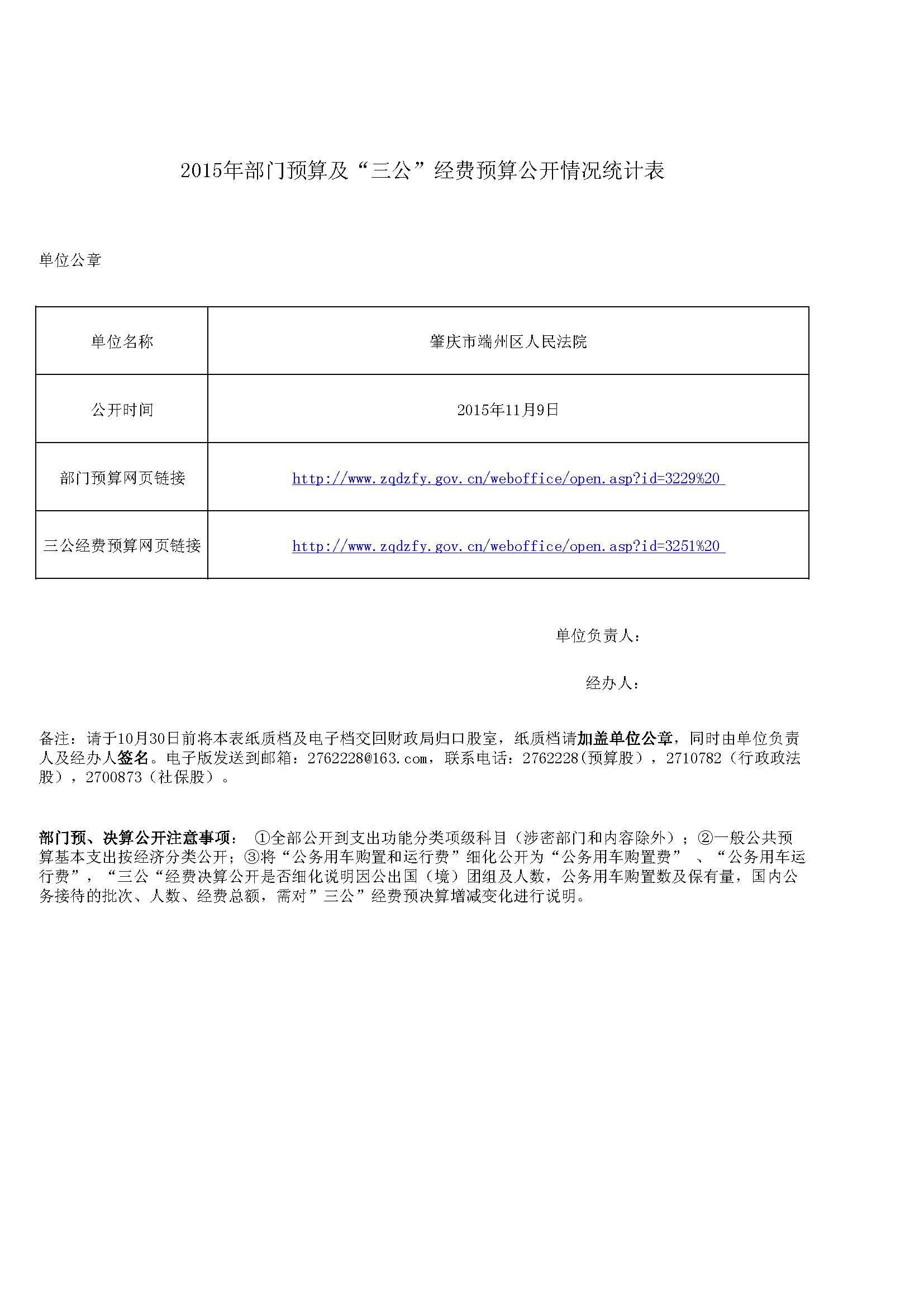 端州区人民法院2015年部门预算及“三公”经费预算公开情况统计表
