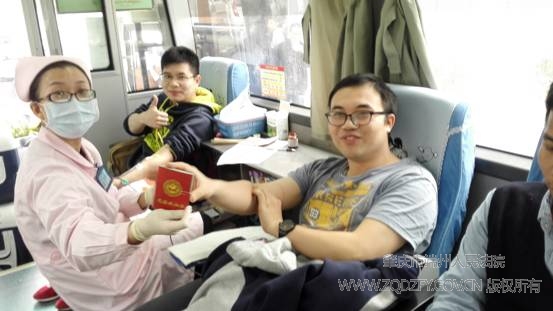 图为我院干警正在献血车上献血