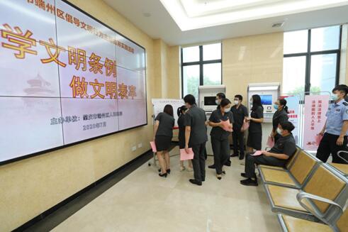 为进一步深化全院干警的文明创建理念,提升文明素养,树立良好形象,7月30日下午,我院在诉讼服务大厅内举办“学文明条例 做文明表率”公职人员倡导文明行为主题教育活动。活动由党组副书记、副院长方文主持,院班子以及30多名干警代表参加了活动启动仪式。