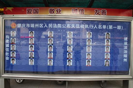 自3月1日起,端州法院拓宽“老赖”曝光台的渠道,通过闹市区大型LED屏幕、公交车站台等方式公布失信被执行人信息,一批“老赖”的照片和姓名赫然在目,吸引来往路人不时驻足观看,并纷纷为曝光平台点赞。