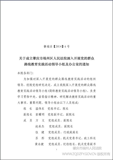 关于成立肇庆市端州区人民法院深入开展党的群众路线教育实践活动领导小组及办公室的通知