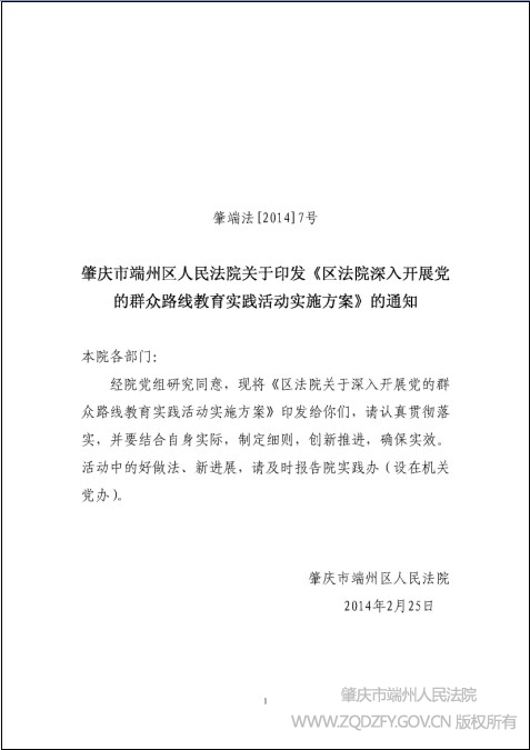 肇庆市端州区人民法院关于印发《区法院深入开展党的群众路线教育实践活动实施方案》的通知