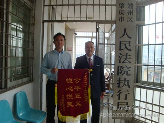近日,我院成功执结了申请执行人李锦江诉被执行人杨光明返还原物纠纷一案。申请执行人李锦江顺利收回了被侵占的房屋,并收取了房屋被占用期间的租金等费用共22600元。为了向承办该案的执行法官表示谢意,申请执行人李锦江特意送来了一面绣有“公平正义、悦心悦民”的锦旗。