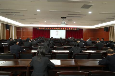 为持续推进政法队伍教育整顿工作走深走实,增强干警廉洁自律意识和拒腐防变能力,3月22日上午,我院召开廉政建设和警示教育大会。会议由党组成员、副院长方文主持,全体在职干警参加了会议。